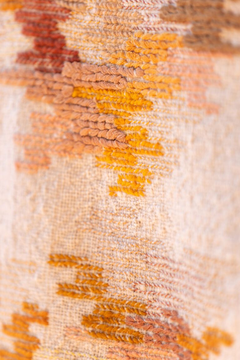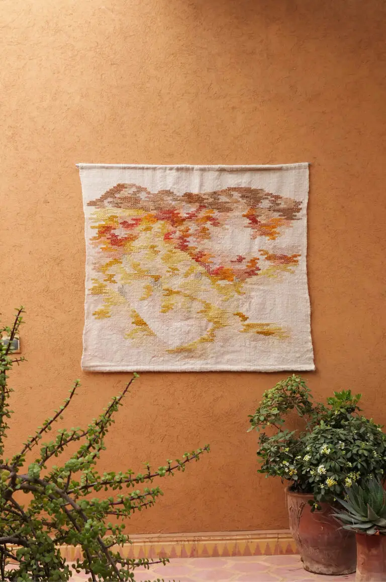 Rubans de mousseline de soie, support toile de laine marocaine